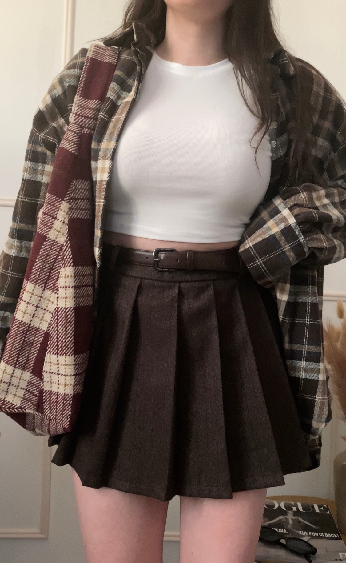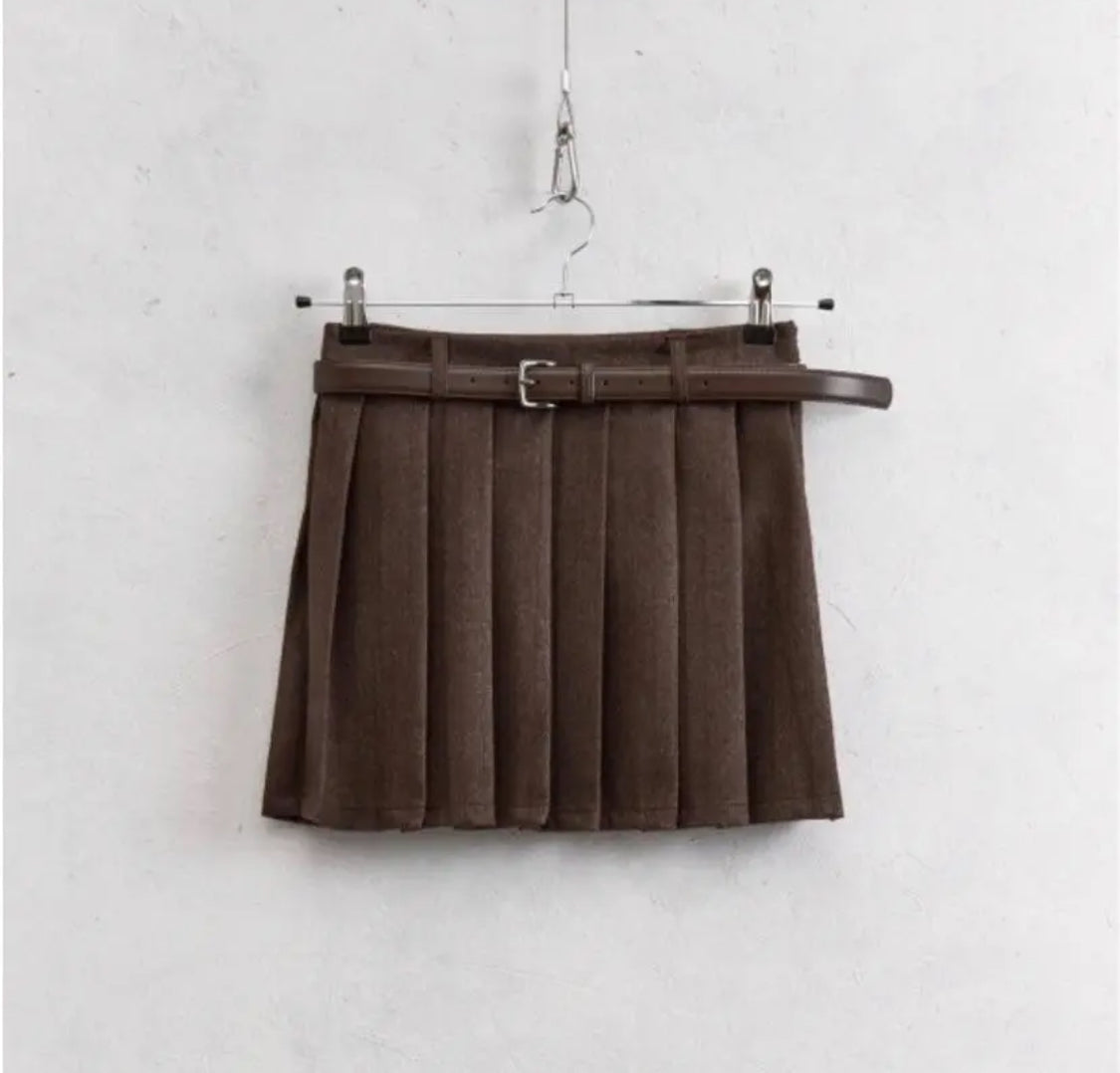 • Gonna a pieghe Lumina, cinturina sottile, tessuto soft touch texture spigata, zip laterale