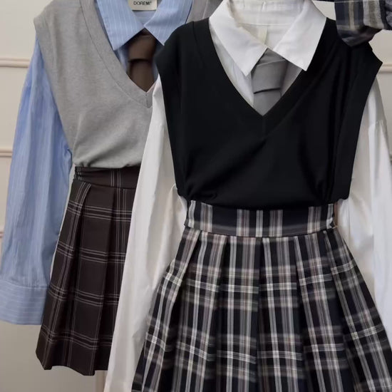• Gonna fantasia tartan, pieghe sul davanti, tessuto liscio sul retro, elastico in vita sul retro, sfoderata