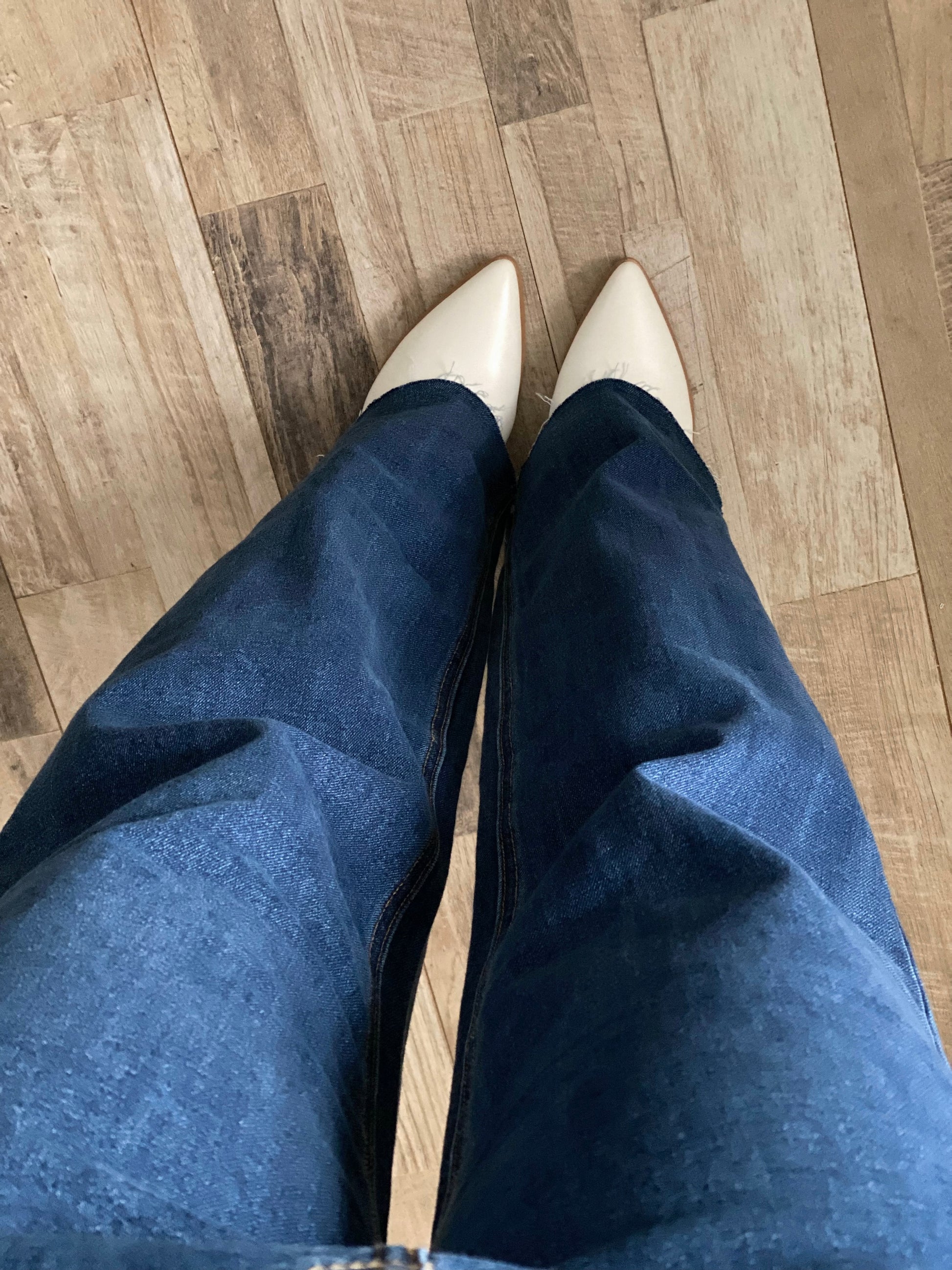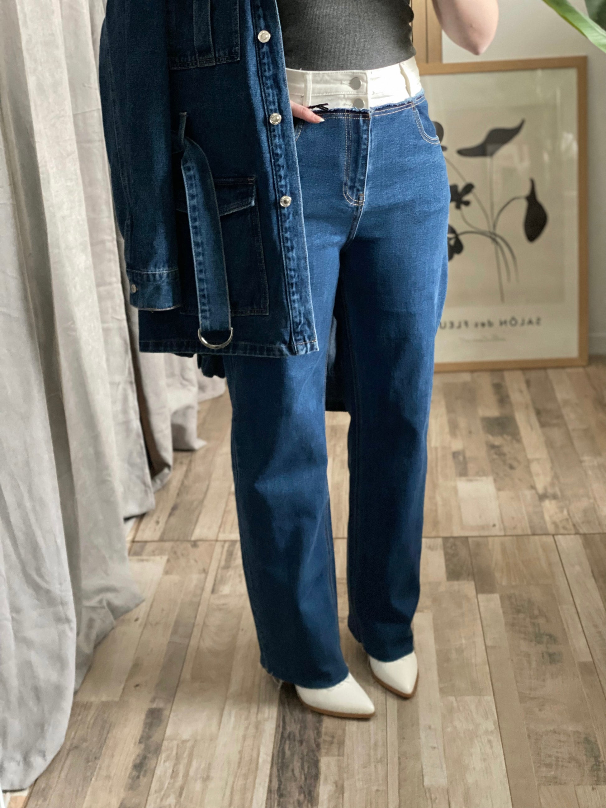 • Jeans Lumina doppio colore, fondo sfrangiato, due bottoni + zip, lavaggio scuro