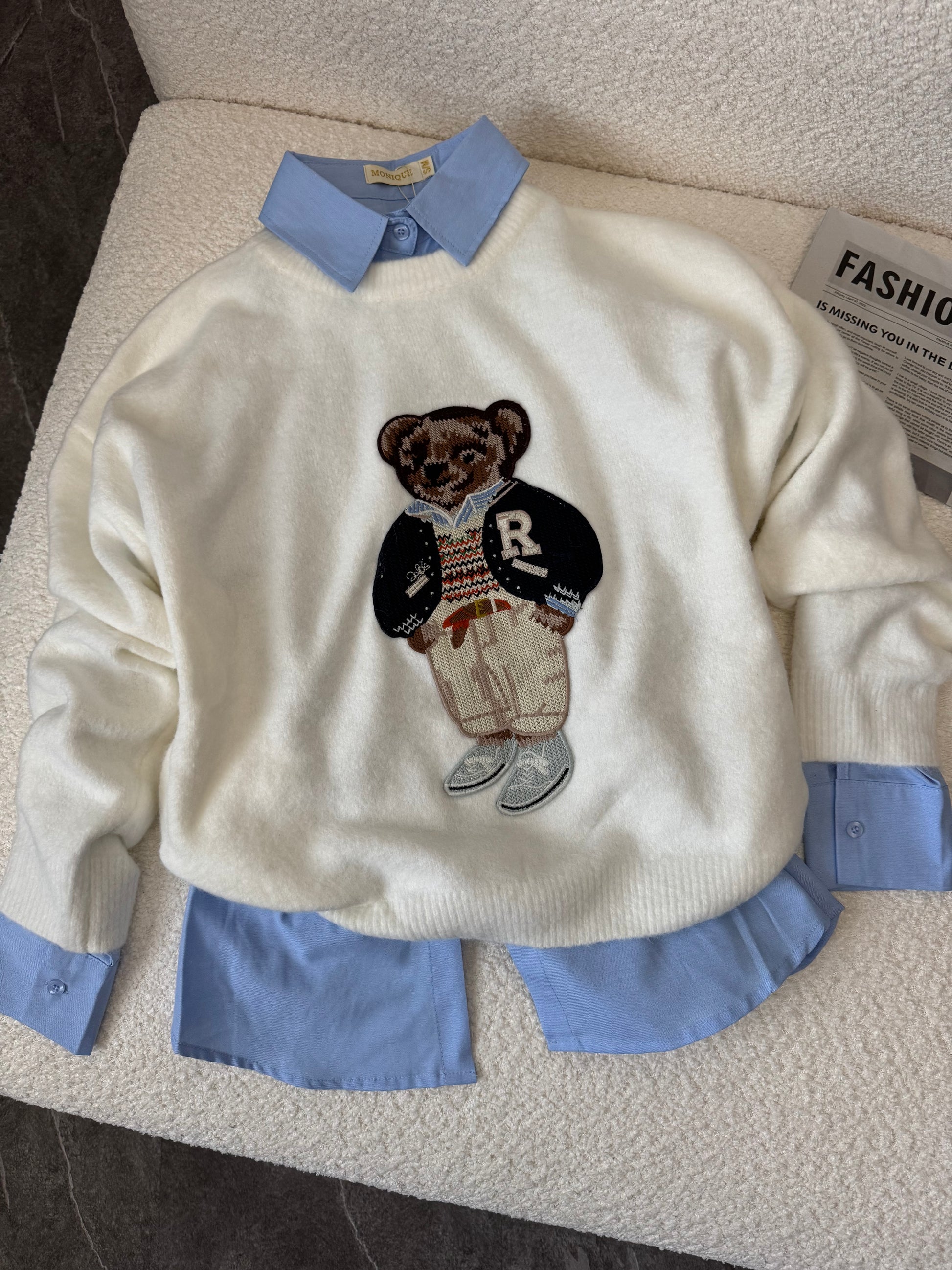 • Maglioncino Vic Bee con applicazione orsacchiotto, scollo tondo